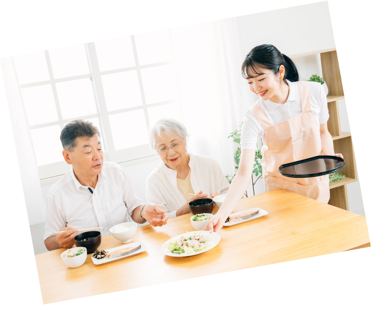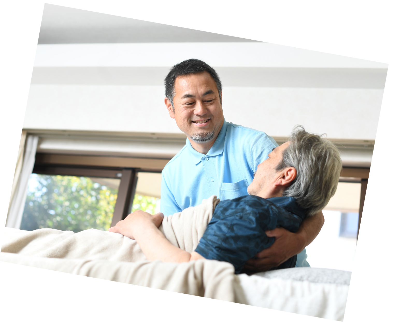 ご自宅を訪問し、入浴・排せつ・食事等や、掃除・洗濯・調理・買物等の家事( 身体介護を伴う) 支援を行います。